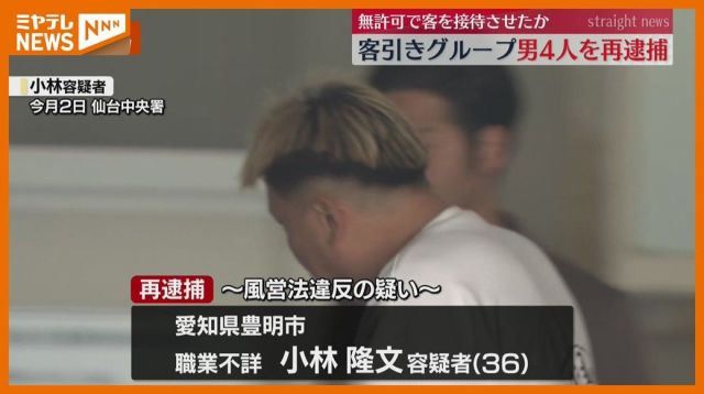 仙台市内の繁華街で、常習的に禁止されている客引き行為をしたとして逮捕されていた男らが、風俗営業の許可を受けず飲食店で女性従業員に接待をさせていたとして、警察は…