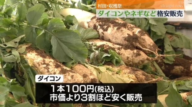 新鮮なダイコンやネギなどを市価より安く販売する「収穫祭」が、宮城県村田町で開かれている。