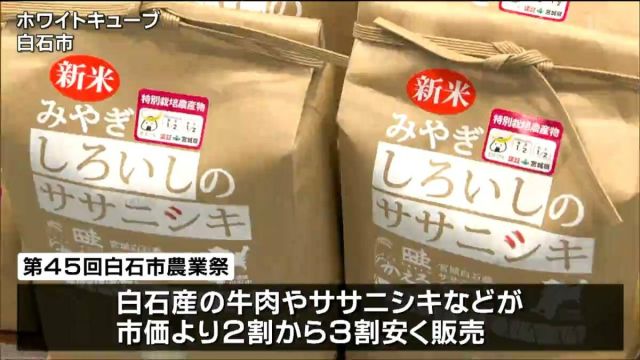 牛肉やコメなど地元産の食材を特別価格で販売する催しが11月8日から宮城県白石市で開催されています。白石市のホワイトキューブで始まった「農業祭」は、今年で45回…