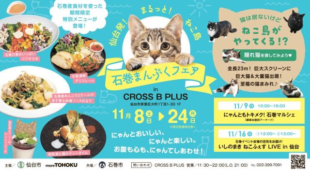 いかがお過ごしですか、nittaです。仙台市青葉区大町の『CROSS B PLUS(クロスビー プラス)』で『仙台発!まるっと!ねこ島 石巻まんぷくフェア』を…