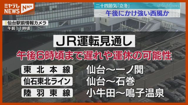11月7日は、二十四節気の1つ「立冬」です。 宮城県内では西風が強く吹いていて、7日午後にかけ交通機関の乱れに注意が必要です。