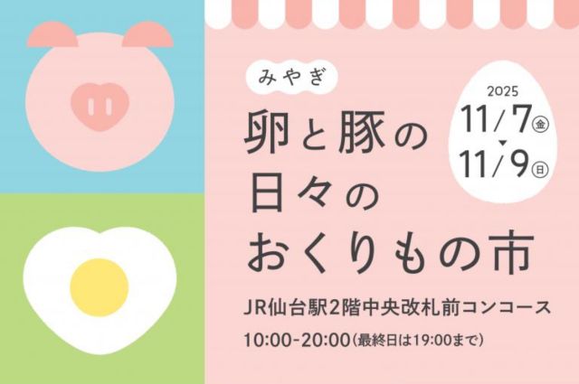 いかがお過ごしですか、nittaです。JR仙台駅2階中央改札口前で、『みやぎ卵と豚の日々のおくりもの市』を、2025年11月7日(金)から9日(日)まで開催す…