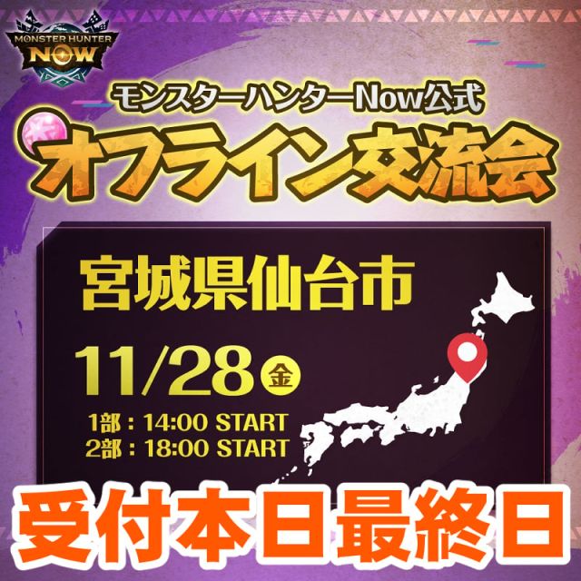 『モンハンNow』仙台は本日締め切り!! みんなと協力して討伐に挑むオフライン交流会ガイド