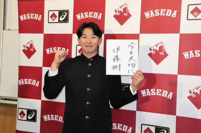 東北楽天からドラフト2位指名された早大の伊藤樹は「うれしい気持ちが一番。東北出身でゆかりのあるチームに選んでもらった」と喜びつつ、「1位を目標にして4年間進…