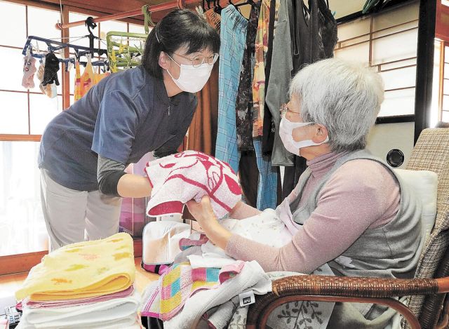 「今日は体調どうですか」。大崎市の竹永房恵さん(76)宅で20日、同市で訪問介護などを担う「ケアステーションあゆみ」の女性ヘルパーが語りかけた。 竹永さんは…