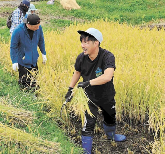 ◇…サッカーJ2仙台元選手の富田晋伍さん(39)が、宮城県七ケ宿町で住民ら約30人とサツマイモ掘りや稲刈りを体験した。 ◇…「Jリーグ屈指のボール奪取能力」…