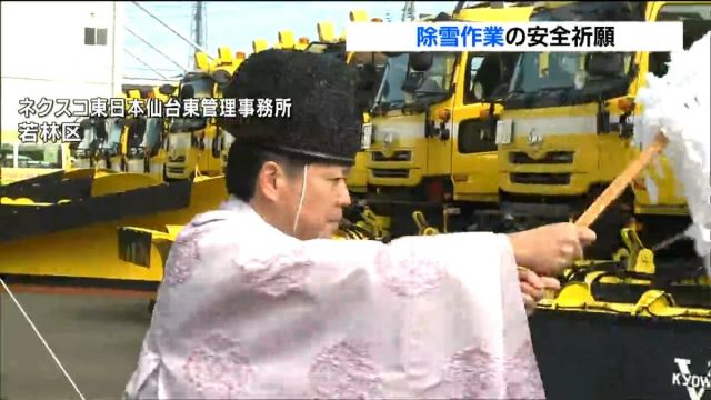 本格的な冬を前に、三陸道や常磐道などで除雪作業をする除雪車の出動式が10月23日、仙台で行われネクスコの職員らが作業の安全を祈願しました。若林区のネクスコ東日…