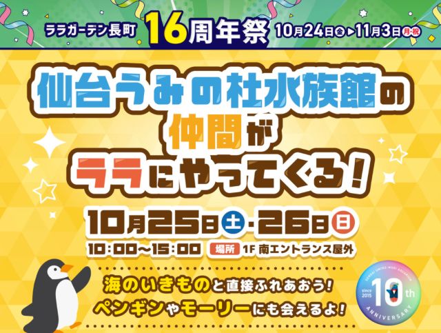 いかがお過ごしですか、nittaです。 仙台市太白区のララガーデン長町・1階エントランス屋外に『仙台うみの杜水族館』の仲間が、2025年10月25日(土)、2…