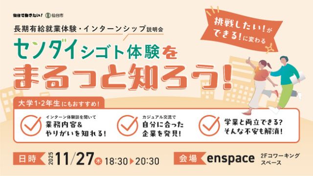 株式会社Asian Bridge仙台市(運営:株式会社Asian Bridge)は、大学1・2年生を主な対象とした、「センダイシゴト体験をまるっと知ろう!-長…