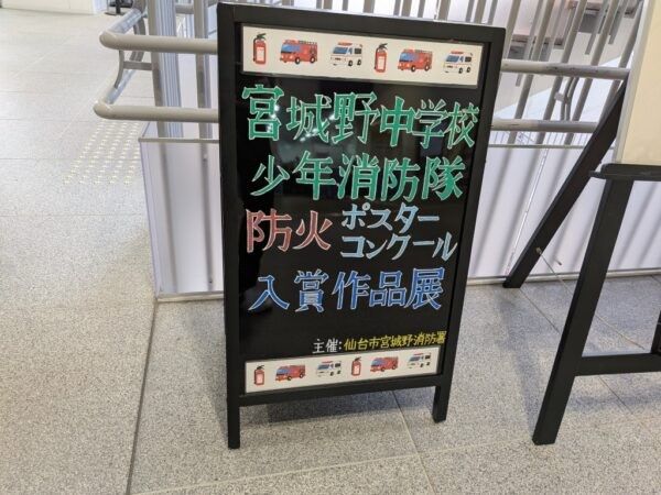 宮城野区文化センターの1階ロビーにて、仙台市宮城野消防署主催の「宮城野中学校少年消防隊防火ポスターコン…