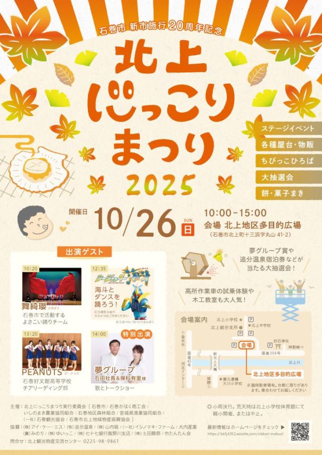 いかがお過ごしですか、nittaです。 宮城県石巻市の北上地区多目的広場で、『北上にっこりまつり2025』を、2025年10月26日(日)に開催するみたいです…
