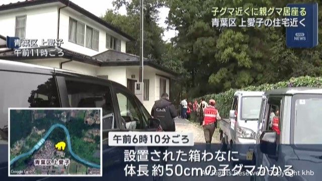 22日午前、仙台市青葉区上愛子の山林で子グマがわなに掛かり近くから親グマが離れない状況が続いています。現場は住宅地に近く、警戒が続いています。
