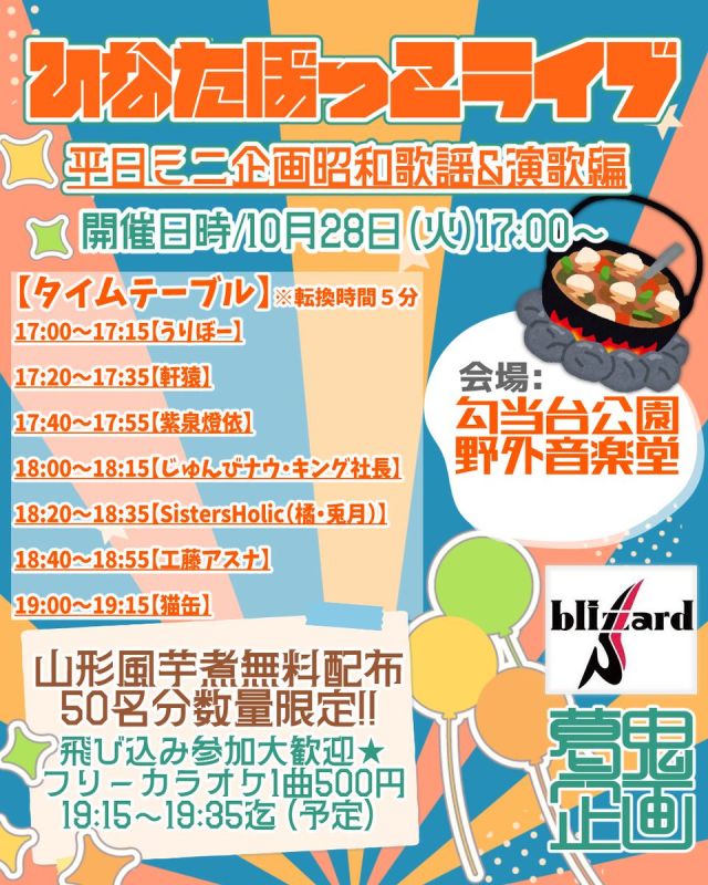いかがお過ごしですか、nittaです。 仙台市青葉区の勾当台公園野外音楽堂で、『ひなたぼっこライブ〜平日ミニ企画昭和歌謡&演歌編』を、2025…