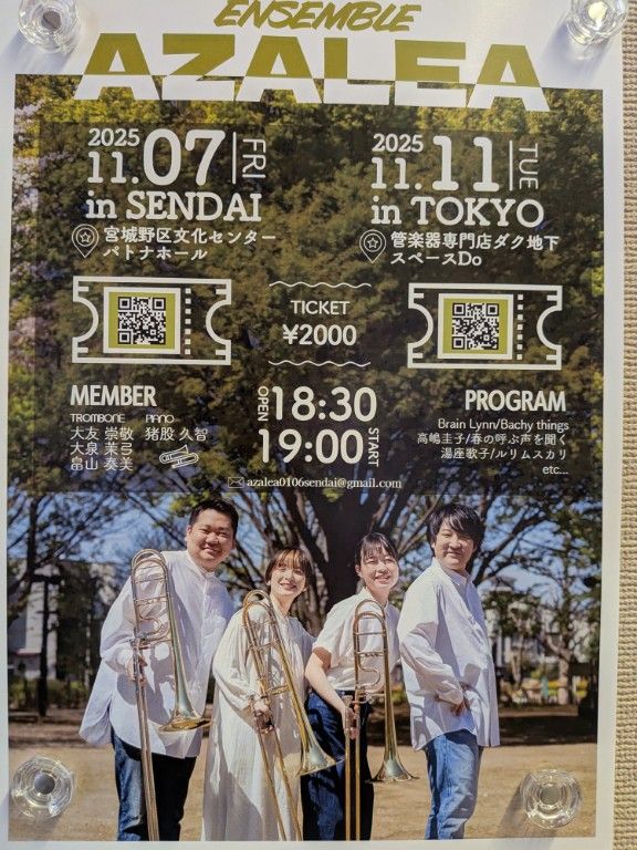 2025年11月7日(金)宮城野区文化センターにて、「ENSEMBLE AZALEA」が開催されます。 開催時間:18:30開場、19:00開演 開催会場:宮…