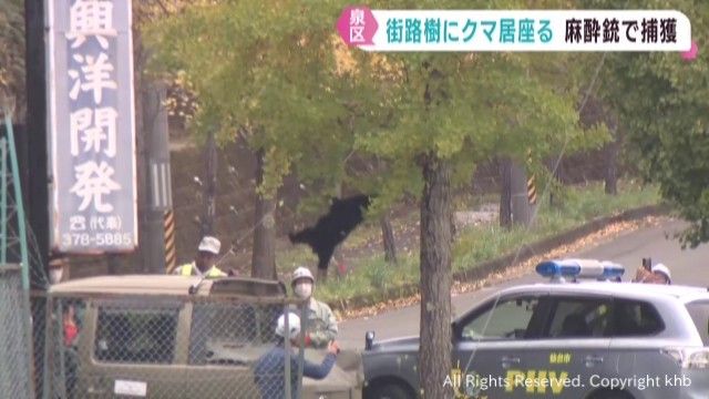 仙台市泉区の市道の街路樹にクマが約5時間も居座り、麻酔銃によって捕獲されました。周辺では交通規制が敷かれるなど一時騒然となりました。