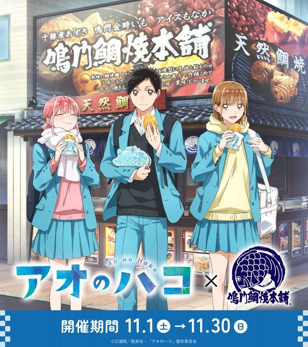 いかがお過ごしですか、nittaです。仙台市青葉区一番町四丁目商店街の『鳴門鯛焼本舗 仙台一番町店』で、『アオのハコ』とのコラボイベントを2025年11月1日…