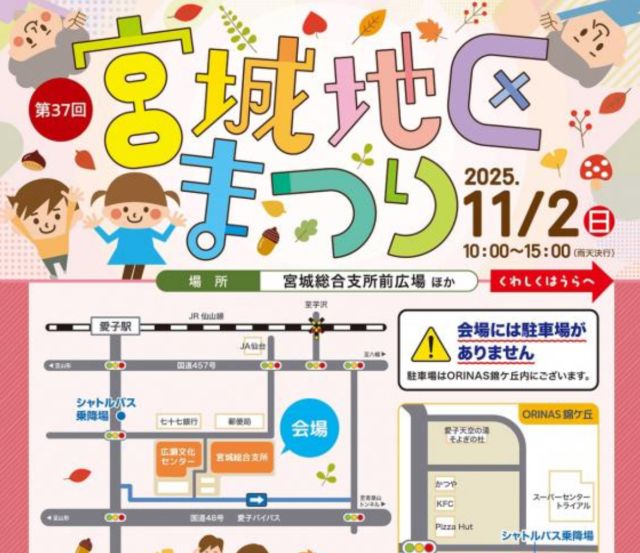 いかがお過ごしですか、nittaです。仙台市青葉区下愛子の宮城総合支所前広場などで『第37回宮城地区まつり』を、2025年11月2日(日)に開催するみたいです…