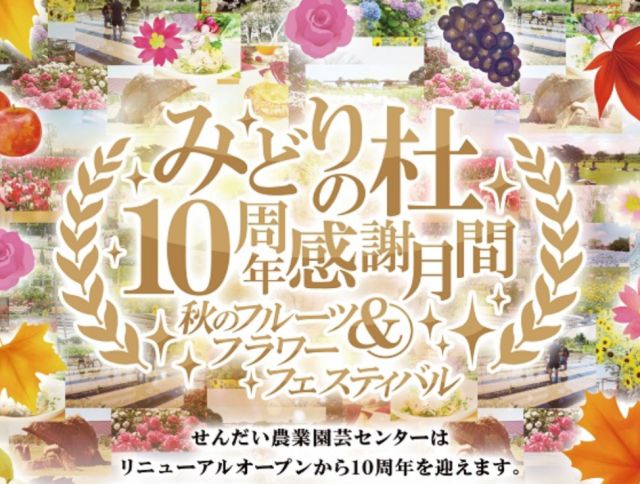 いかがお過ごしですか、nittaです。仙台市若林区の『せんだい農業センター みどりの杜』で、2025年10月4日(土)から開催されてきた『みどりの杜10周年感…