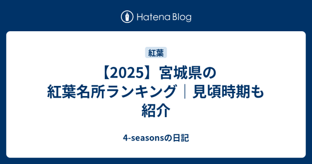 宮城県の紅葉の見頃はいつ? 宮城県の紅葉は、標高や地形の違いにより9月下旬から11月上旬まで楽しめるのが特徴です。山間部では10月上旬から、中低地や市街地では…