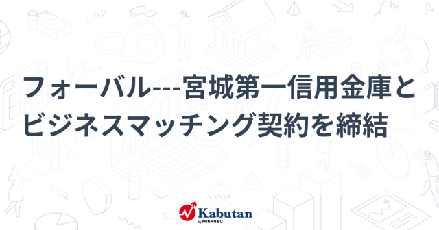 フォーバル 1180 -10フォーバルは4日、宮城第一信用金庫(本社:宮城県仙台市)とビジネスマッチング契約を締結したと発表した。本契約は、少子高齢化や人口…