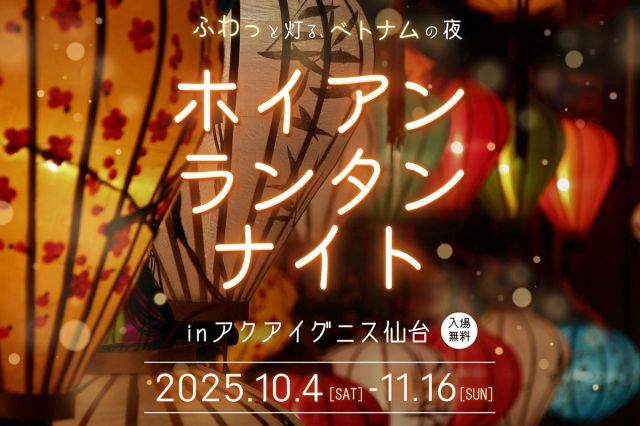 アクアイグニス仙台にて、10月4日から11月16日までの期間限定で「ホイアンランタンナイト」が初開催されます。会場では、ベトナム中部の古都ホイアンから届いた約…