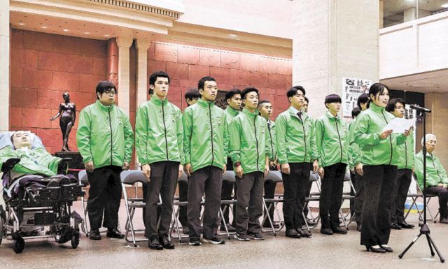 愛知県で17日から開催される「技能五輪全国大会」と「全国障害者技能競技大会(アビリンピック)」の結団式が6日、県庁1階ロビーであった。 技能五輪には電工や建…