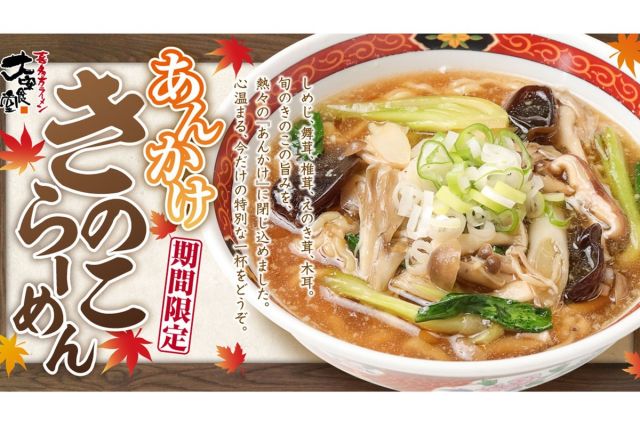 喜多方ラーメン 大安食堂は10月1日から、季節限定メニュー「あんかけきのこらーめん」を販売します。