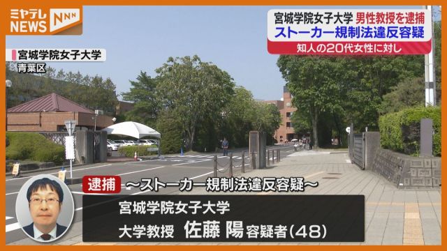 宮城学院女子大学の48歳の大学教授が、知人の20代女性に対してストーカー行為をしたとして逮捕されました。