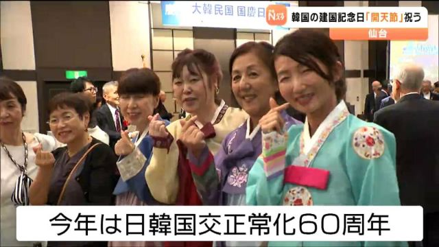 韓国の建国記念日とされる「開天節」を祝う催しが10月1日、仙台市内で開かれ、仙台の韓国総領事が「両国が真の友情を築けるように協力してほしい」と呼びかけました。…