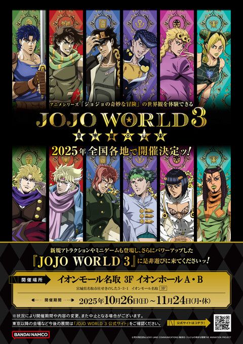 いかがお過ごしですか、nittaです。 イオンモール名取でアニメシリーズ「ジョジョの奇妙な冒険」の世界観を体験できる『JOJO WORLD 3』が、イオンモー…