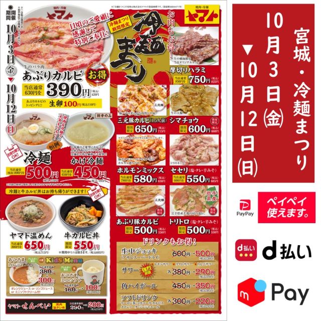 いかがお過ごしですか、nittaです。 宮城県下の『焼肉冷麺ヤマト』で、『冷麺まつり』を、2025年10月3日(金)から12日(日)までの10日間開催するみた…