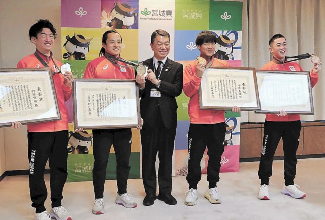 東京で昨年11月に開催された聴覚障害のあるアスリートの国際大会「デフリンピック」でメダルを獲得した県ゆかりの選手4人が県の特別表彰を受けた。 4人は陸上男子…