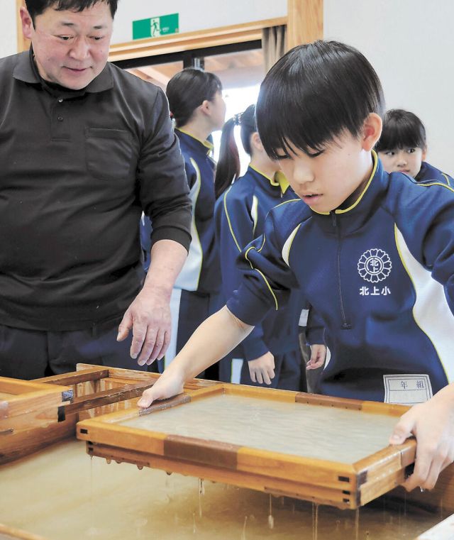 石巻市北上小5年生13人が22日、地元の北上川河川敷で刈り取ったヨシを使って和紙作りに取り組んだ。完成した紙はそれぞれ自分の卒業証書となり、来年3月の卒業式…
