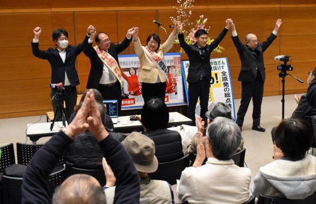 日本共産党宮城県委員会は24日、高橋ちづ子衆院東北比例予定候補を必ず国会へと訴える緊急大演説会を仙台市で開きました。