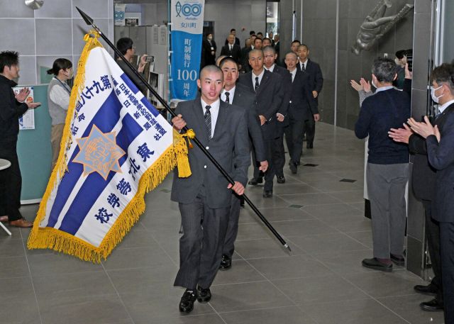 第98回選抜高校野球大会(19日開幕・甲子園球場)に出場する東北高硬式野球部の選手ら24人が10日、仙台市青葉区の河北新報社を訪れ、健闘を誓った。 3年ぶり…