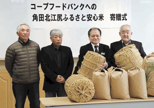角田市の角田北江尻ふるさと安心米生産組合は26日、高齢化などで耕作されなくなった田んぼで栽培したコメ500キロを「コープフードバンク」(富谷市)に寄贈した。…
