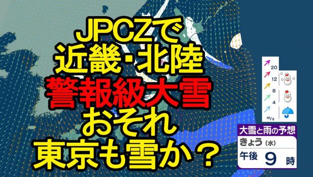日本付近は冬型の気圧配置が続き、週末にかけて寒気がさらに強まる見込みです。強い寒気が流れ込んできている中、日本海にJPCZ(日本海寒帯気団収束帯)とよばれる帯…