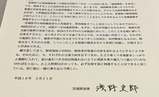 〈障害福祉は施設から地域へ。厚生省時代からの思いを「宣言」として全国に発信する〉 知事になる前からの信念、全国的な議論を期待 知的障害者の幸せは施設での生活…