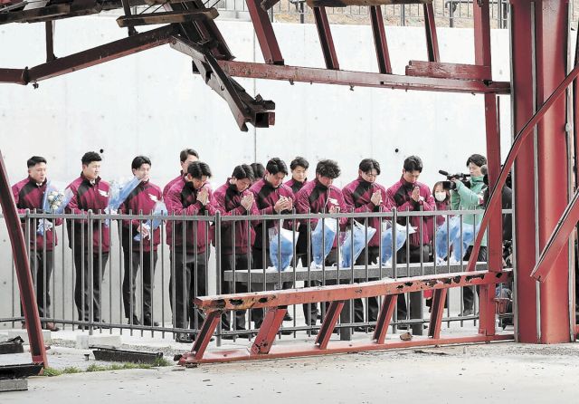 プロ野球東北楽天に今季入団した新人12人が26日、東日本大震災で甚大な被害に遭った南三陸町志津川地区を訪れ、被災地の球団として戦う決意を新たにした。 前南三…