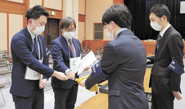27日公示の衆院選(2月8日投開票)を前に、県選管は26日、立候補受け付けのリハーサルを県庁講堂で行った。くじ引きによる届け出順の決定から、街頭演説で使う腕…