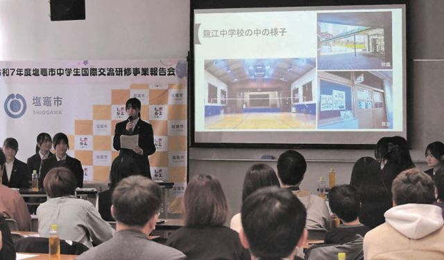 塩釜市の国際交流研修事業で韓国を訪問した中高生の報告会が、市魚市場大会議室であった。生徒10人が保護者や関係者に向け、それぞれの体験や学びについて報告した。…