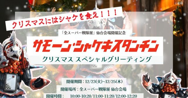 東映は、現在開催中の「全スーパー戦隊展」仙台会場にて、12月23日~25日の3日間、“サモーン・シャケキスタンチン”クリスマススペシャルグリーティングを実施す…