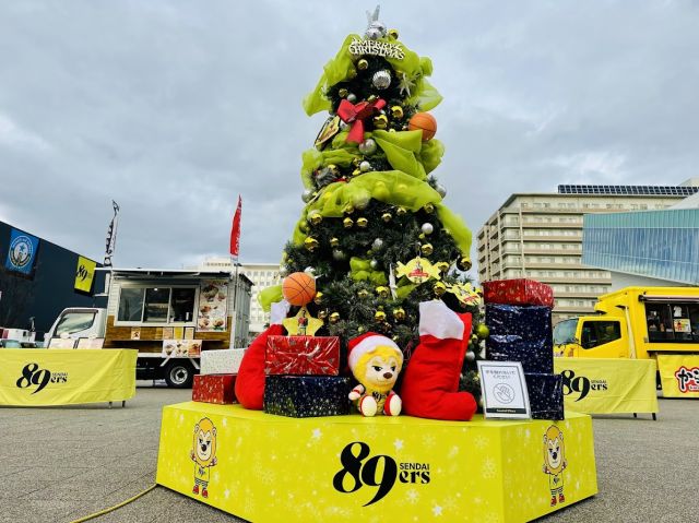 あすと長町杜の広場公園に仙台89ERS仕様のスペシャルなクリスマスツリーがお目見えしていますよ! サンタに扮したティナとたくさんのプレゼントボックスたち。 そ…