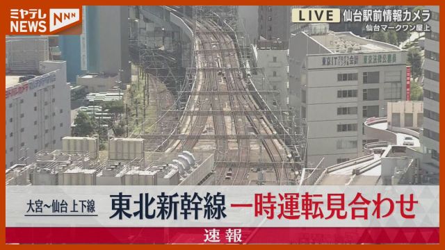 JR東日本によりますと東北新幹線は大宮駅と小山駅の間の架線に付着物があり撤去作業のために仙台駅と大宮駅の上下線で一時運転を見合わせているということです。運転再…