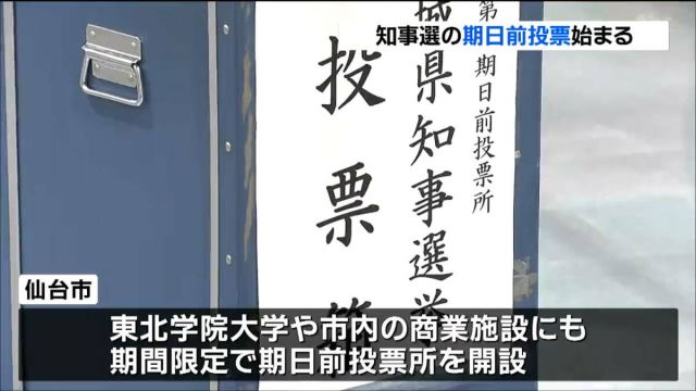 10月9日に告示された知事選挙の期日前投票が10月10日から始まり、有権者がさっそく一票を投じています。JR仙台駅前のアエル5階に設けられた期日前投票所では、…