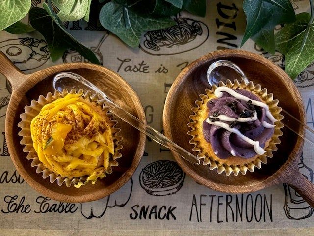 ファミリーマートから10月7日新発売の「かぼちゃと紫芋のプチケーキ」(348円)がかわいくておいしそ...