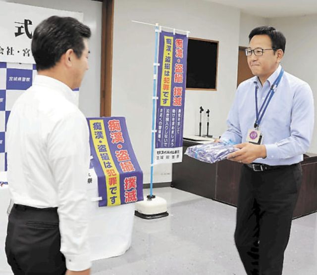 セキスイハイム東北(仙台市)は、地域の防犯活動を支援しようと、痴漢・盗撮被害防止用のぼり旗計50本とサイバー犯罪防止メッセージ入りボールペン計1000本を県…