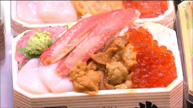 カニやイクラなどを豪快に盛り付けた海鮮弁当に、ショウガが効いた北海道名物の唐揚げ「ざんぎ」。仙台市青葉区の藤崎で始まった物産展では、北海道のグルメを提供する約…