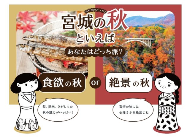 宮城の秋と言えば、サンマや新米を味わう「食欲の秋」? それとも秋保大滝や鳴子温泉郷が色鮮やかに染まる「絶景の秋」? 宮城県選管は18日、知事選(26日投開票…
