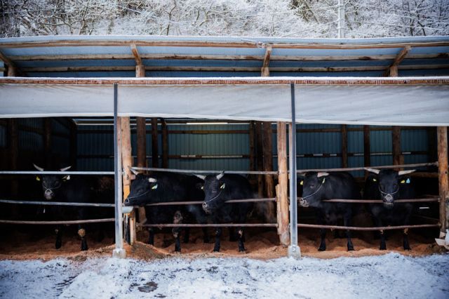 宮城県石巻市は、県の中でも比較的温暖で雪はあまり降らない。だが、取材に訪れたその日は、一面の銀世界だった。牛舎